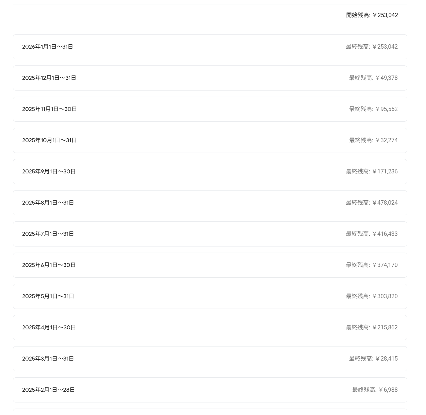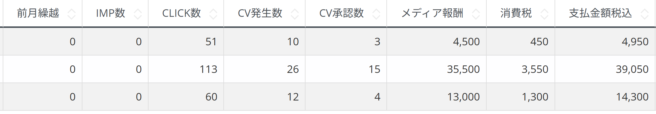 こちら、今現在運営しているサイトの収益画面になります。